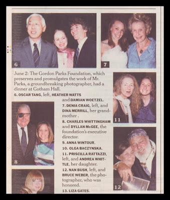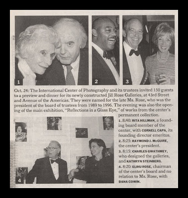 It seemed that in the 2000s, photographers became fashionable. One example of this was that they began to appear more frequently in the Sunday New York Times "Evening Hours" page--photos of "bold-faced-named-people" out on the town. The photos were shot by Bill Cunningham, the Times street-fashion photographer, and you'd assume that he'd be acquainted with other photographers and would therefore photograph them at social events. But since he undoubtedly shoots many of these events a week, who appears on the page each week would be a function of the editors' choices. So the fact that more photographers would appear as "bold-faced names" would indicate a perception that they had become a more prominent part of the New York social scene.